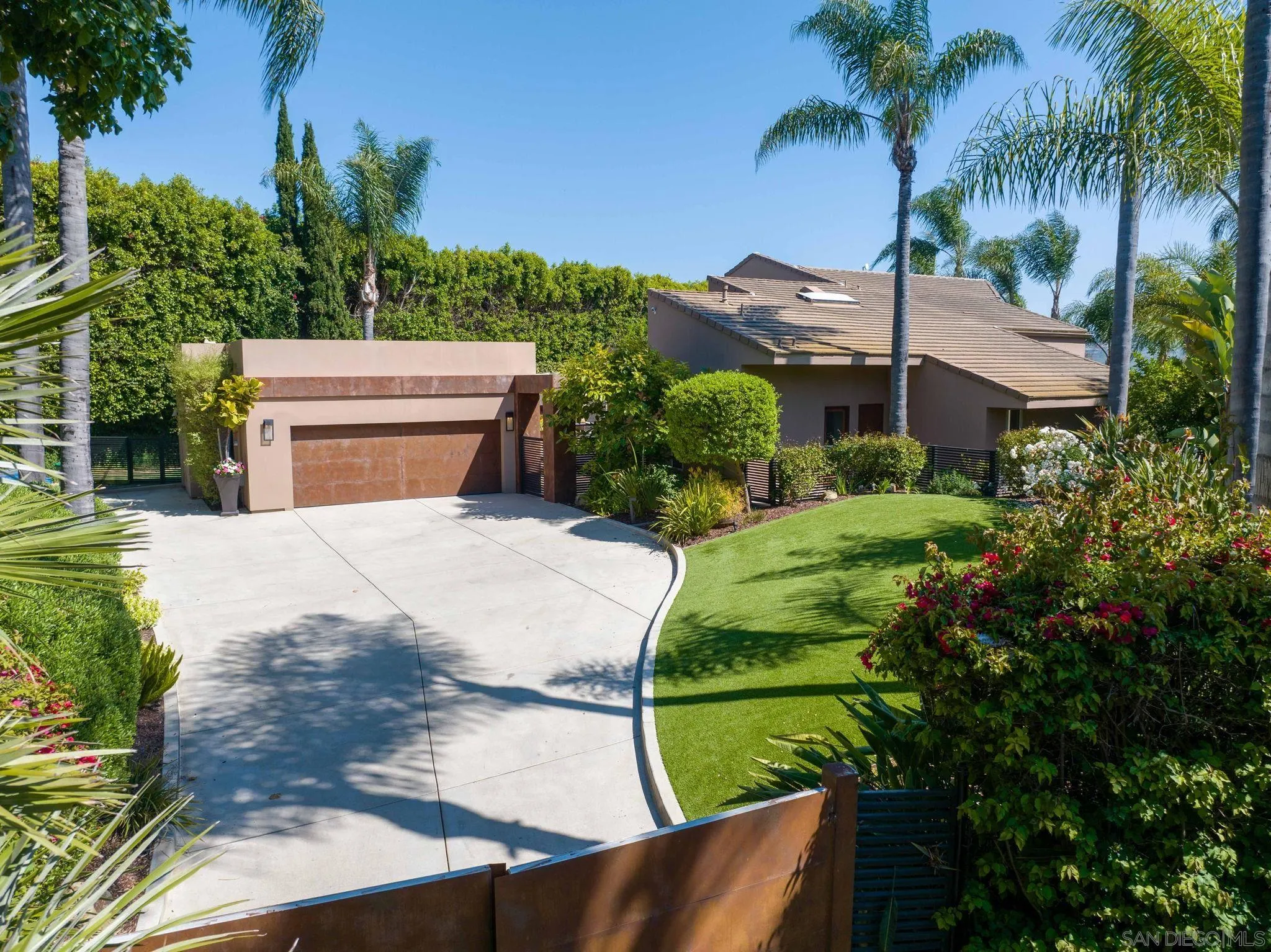 Welcome to 14817 Arroyo Rosita - a luxurious, resort-style contemporary home nestled in one of Rancho Santa Fe's most coveted and private enclaves. Perched on one of the most Westerly streets in the community, this exceptional property offers panoramic views over the Del Mar Polo Fields and out to the Pacific Ocean. Meticulously upgraded with over $300,000 in recent enhancements, this home now features a state-of-the-art sound, lighting, and security system, delivering unparalleled comfort, convenience, and peace of mind. Smart home technology powered by Door Bird, Apple TV, Screen Logic (pool control) and Sonos offers full control at your fingertips. Inside, soaring cathedral ceilings and bi-fold glass doors create a seamless indoor-outdoor flow from the expansive great room to the private deck and entertainer's dream backyard. The chef's kitchen is outfitted with top-tier Viking and Sub-Zero appliances, while elegant Travertine and wood flooring add warmth and sophistication throughout. The luxurious primary suite boasts a custom walk-in closets, private garden patio, dedicated office, and spa-style bath complete with sauna. Outdoor living shines with a sparkling pool and spa with a tranquil waterfall feature, built-in BBQ, pizza oven, and surround sound - all perfectly positioned to enjoy breathtaking sunsets and ocean breezes. Located on a gated street, and just a short walk to the renowned Market restaurant, this home sits at the crossroads of Rancho Santa Fe and Del Mar - offering the best of both worlds in location and lifestyle. Potential for an ADU.