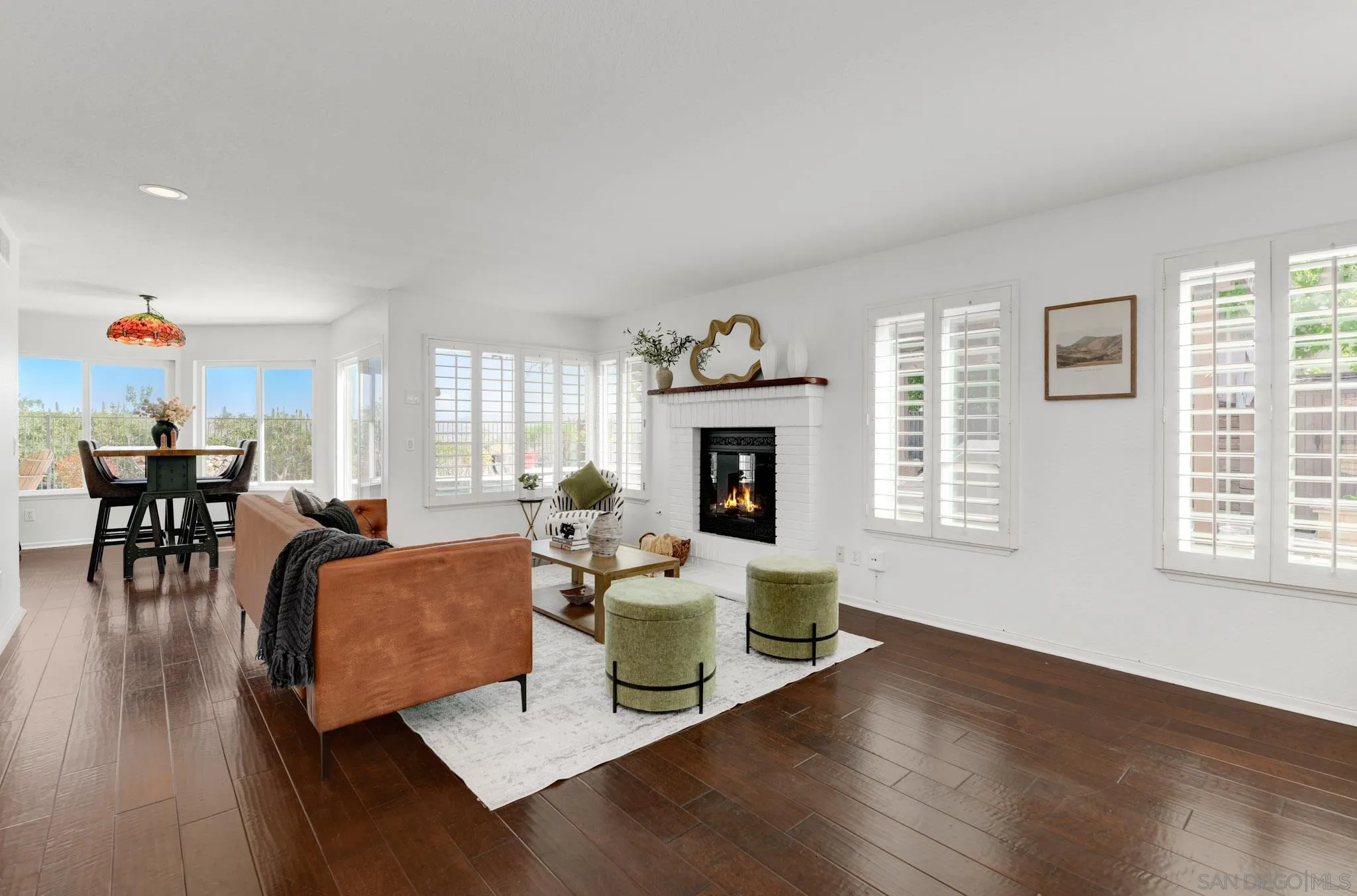 Striking hilltop location in the Terraces at Cantebria with panoramic hillside and mountain views, this beautifully upgraded home offers the perfect blend of comfort, style, and functionality. Thoughtfully renovated inside and out, the property features a newer roof, owned solar, fresh interior and exterior paint, and a fully reimagined outdoor setting with paver driveway and walkways, new landscaping, turf, irrigation, and landscape lighting. The backyard is a true retreat, complete with a stamped concrete patio, pergola, fire pit, putting green, planter beds, and a modern Pebble Tech pool and spa with river rock accents--ideal for entertaining. Located just a few minutes to the beach, this home is true California living at it's finest. Inside, the home is bright and inviting with gorgeous hardwood floors, designer paint, shutters, recessed lighting, dual pane windows and sliders, central air, and a whole house fan. The updated kitchen is complemented by upgraded appliances, while fireplaces in both the family room and primary suite add warmth and character. The recently renovated primary suite features a spa-like bathroom with soaking tub, custom shower, new dual vanity, all-new floor and wall tile, updated lighting and plumbing fixtures, and custom California Closets. Additional highlights include a One Water system, upgraded insulation, newer water heater, epoxy garage floors, and a spacious 3-car garage. Residents enjoy access to community pool, spa, and tennis courts, all just moments from shopping, dining, and everyday conveniences in the heart of Encinitas.