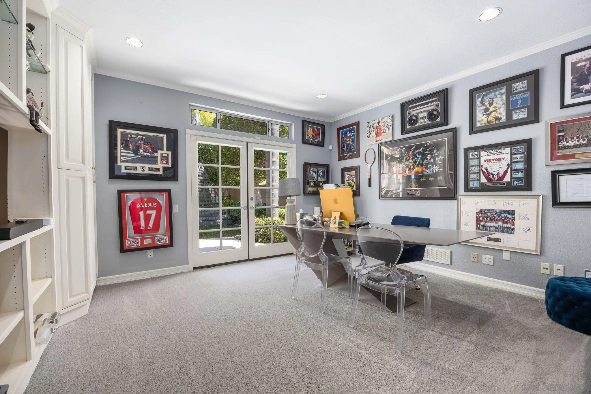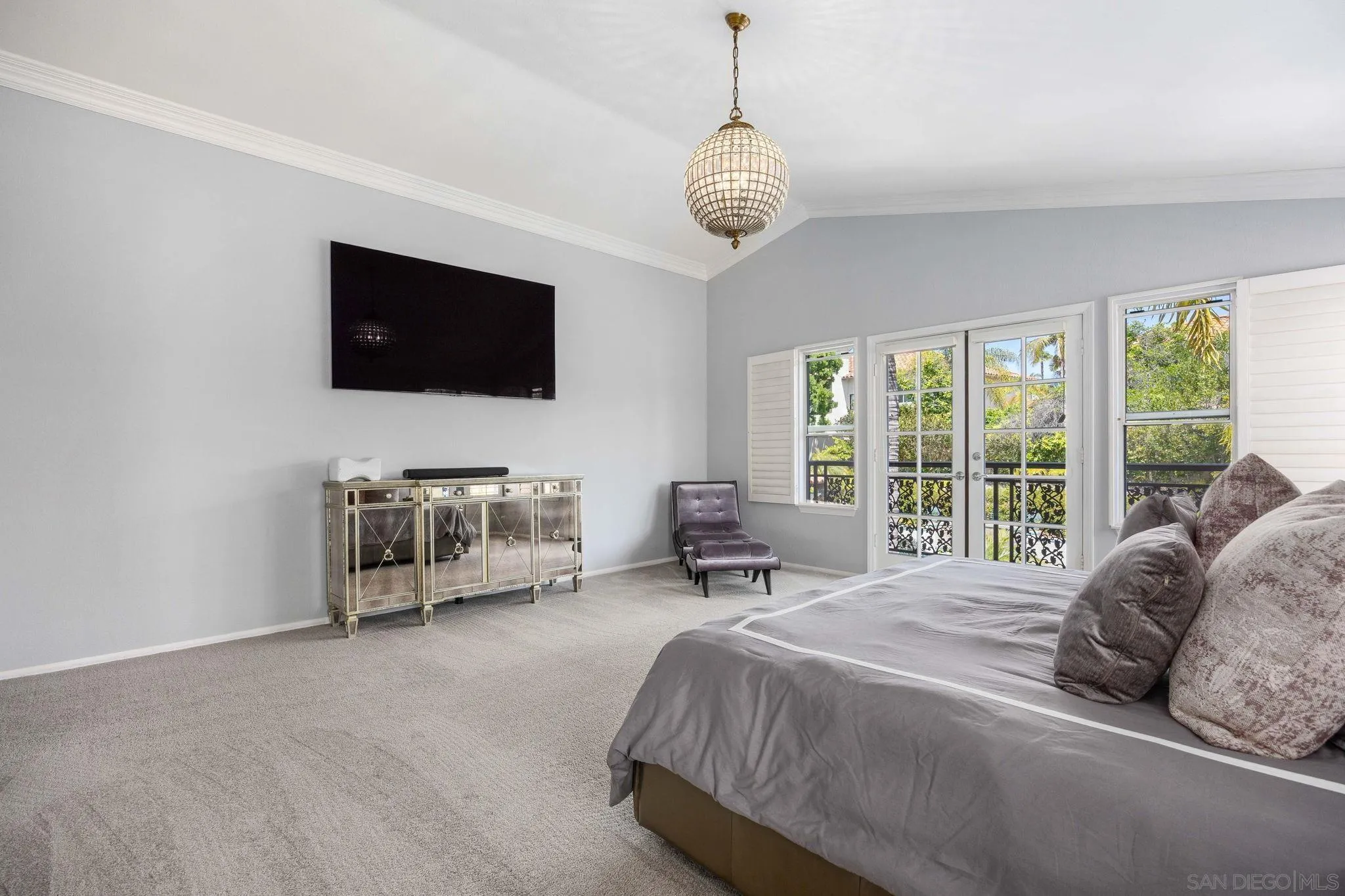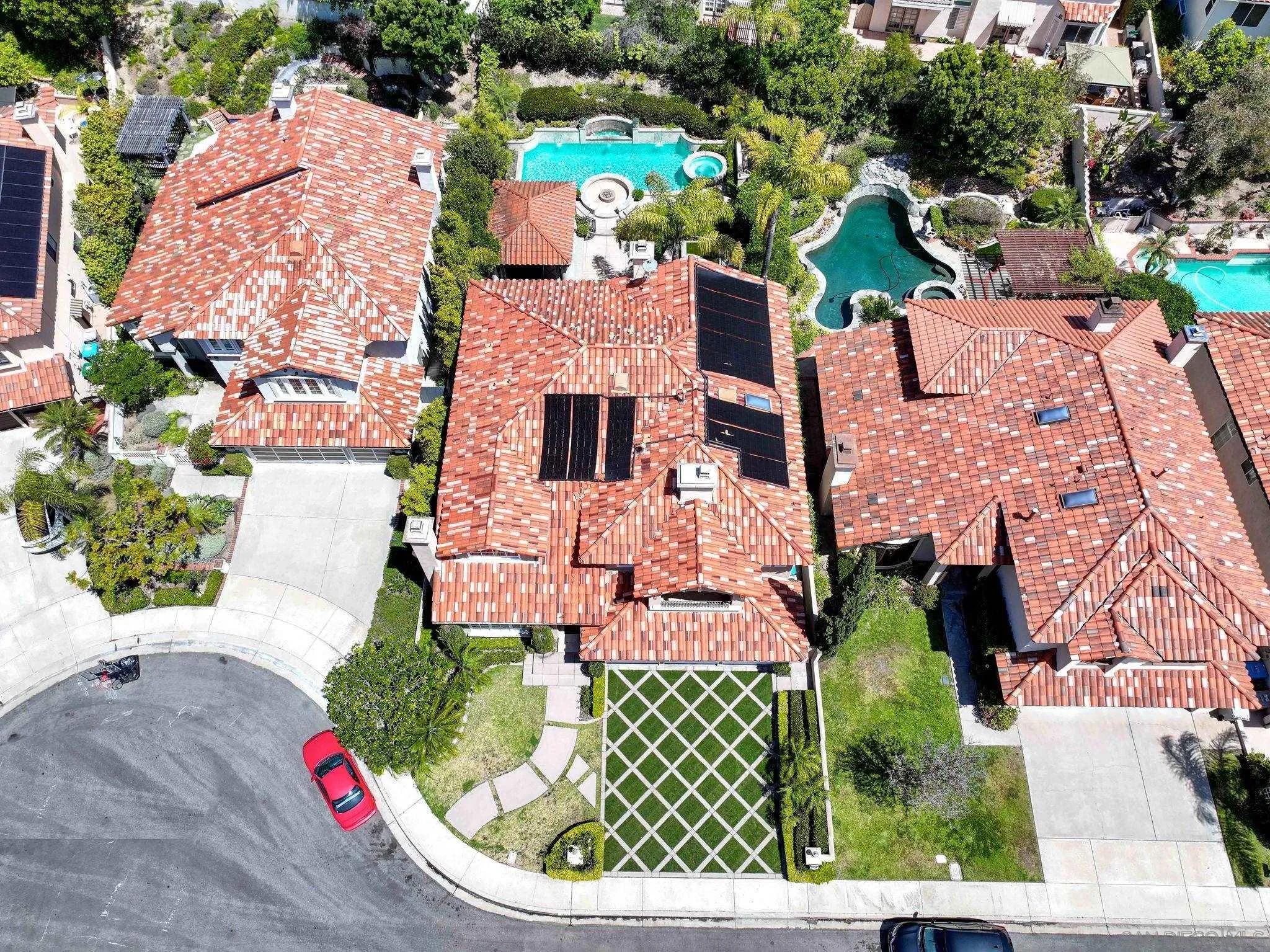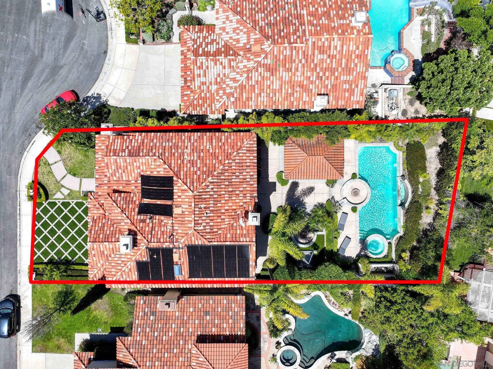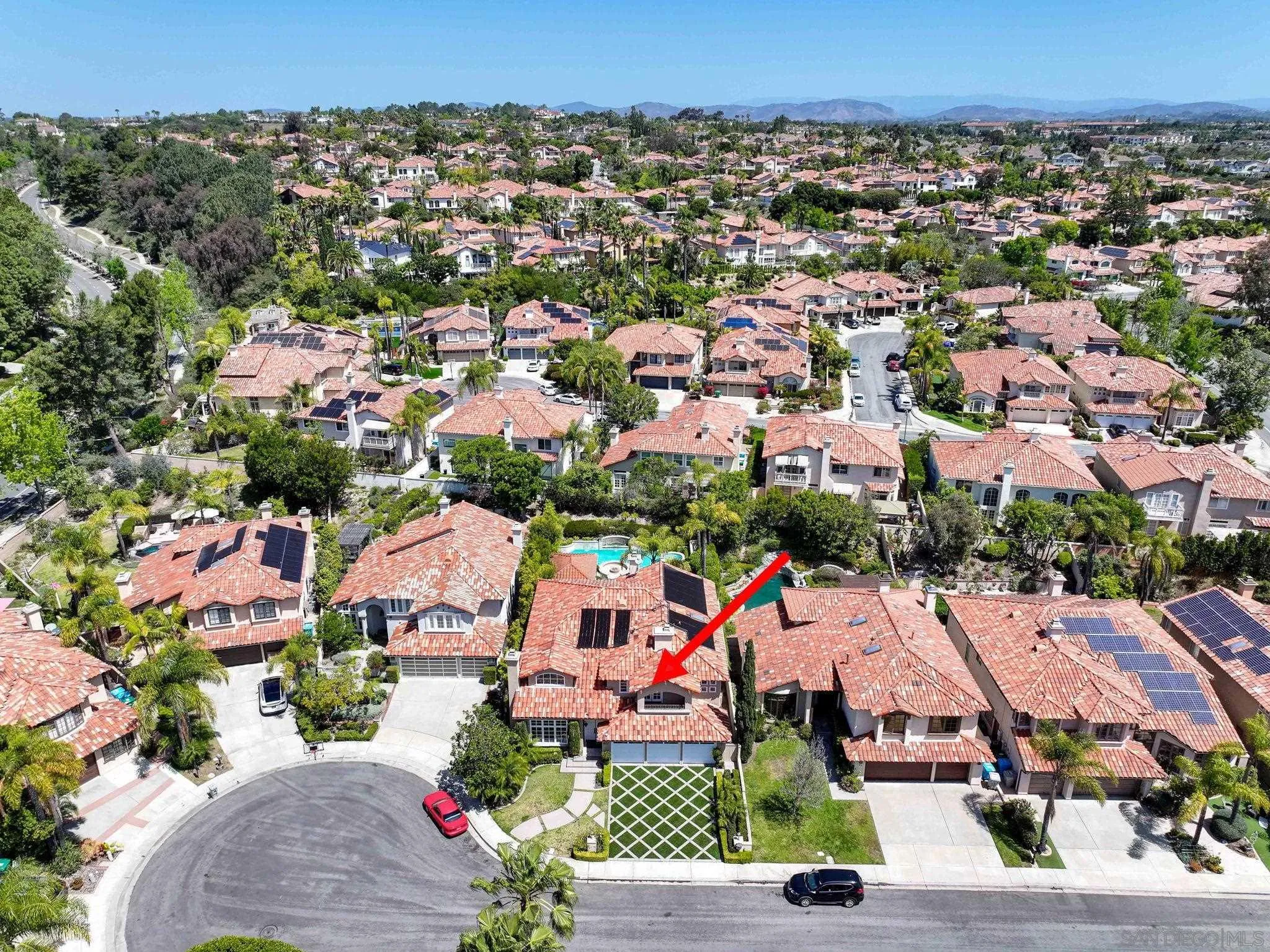 Tucked away on a quiet cul-de-sac in Carmel Valley, this home sits on one of the largest lots in the neighborhood and offers an ideal blend of space, functionality, and lifestyle--just moments from Ashley Falls Elementary School, parks, and greenbelts. When you enter the home, you are greeted by vaulted ceilings and reception space. The open layout features a formal dining & living room. The spacious family room flows seamlessly into the kitchen, complete with stainless steel appliances, a double oven, and ample space for everyday living and entertaining. You'll also find a dedicated office space, a convenient downstairs suite, designated laundry room, and a 3 car garage. Upstairs includes an additional office/media room, two ensuite bedrooms, and a private primary retreat with a balcony overlooking the backyard. The spa-inspired primary bath features a soaking tub, double-sided fireplace, walk-in shower with dual shower-heads, dual vanities, and a custom walk-in closet. Step outside to your own private oasis--designed for year-round enjoyment. The expansive backyard features three outdoor firepits, a built-in barbecue with grill and wine refrigerator, outdoor heaters, multiple lounge areas, and a European-inspired pool and spa with tranquil waterfalls. A custom-built pergola completes the space, creating the ultimate setting for entertaining or relaxing. With no HOA, owned solar, and an unbeatable location, this is a rare opportunity to own a truly special home in one of North County's most sought-after communities. Mello Roos scheduled to end next year!