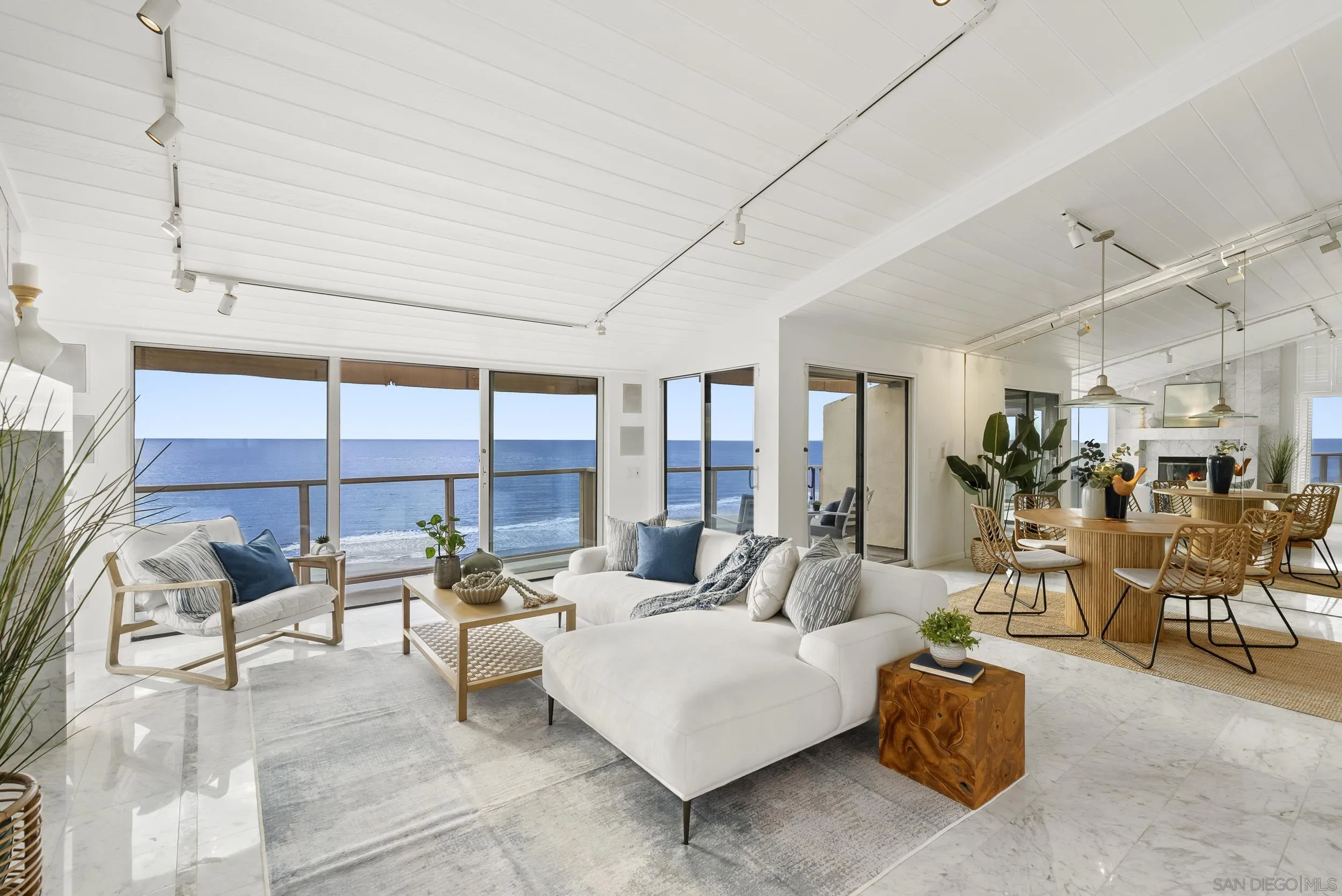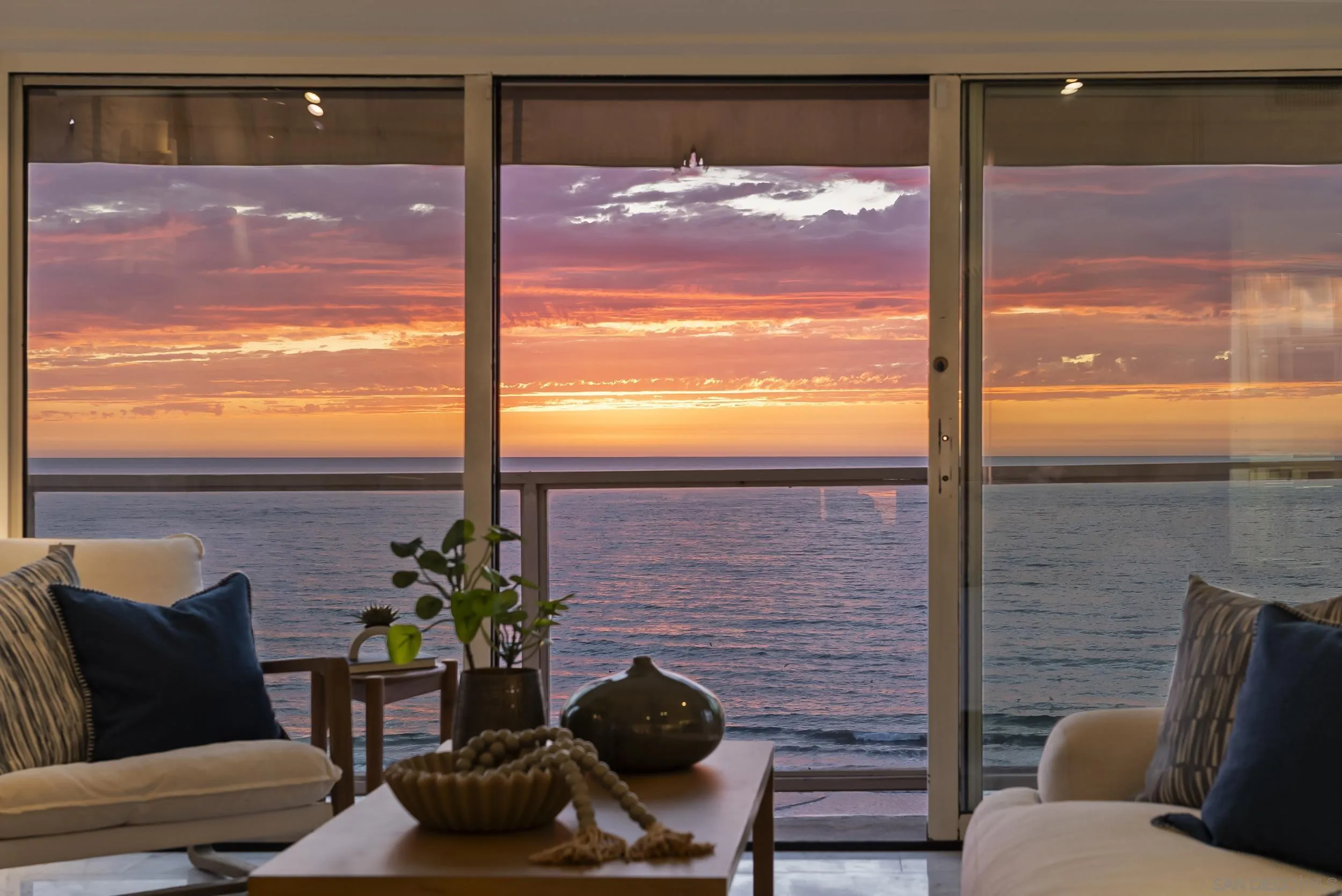 Oceanfront Beach Chic Coastal Condo at Seascape Sur First time on the market since 1989, this rare 2-bedroom, 2.5-bath oceanfront condo is perched on the top floor in one of the most desirable locations within Seascape Sur. Enjoy unobstructed southwest-facing ocean views where every sunset feels like a private show. The unit features an open layout flooded with natural light, a cozy fireplace, and a built-in wine bar--perfect for entertaining or unwinding after a day at the beach. Thoughtfully designed and professionally staged. You'll also appreciate the two side-by-side parking spaces, a huge plus for oceanfront living. Seascape Sur is one of Solana Beach's most popular oceanfront communities, known for its lush tropical landscaping, pools, spas, tennis courts, and direct beach access. Walk to local restaurants, shops, and cafes, or take a quick drive to Del Mar and the racetrack. Whether you're looking for a coastal getaway, a full-time beach home, or a high-demand vacation rental (with local regulations allowing stays as short as one week), this property checks all the boxes for the ultimate coastal California lifestyle.