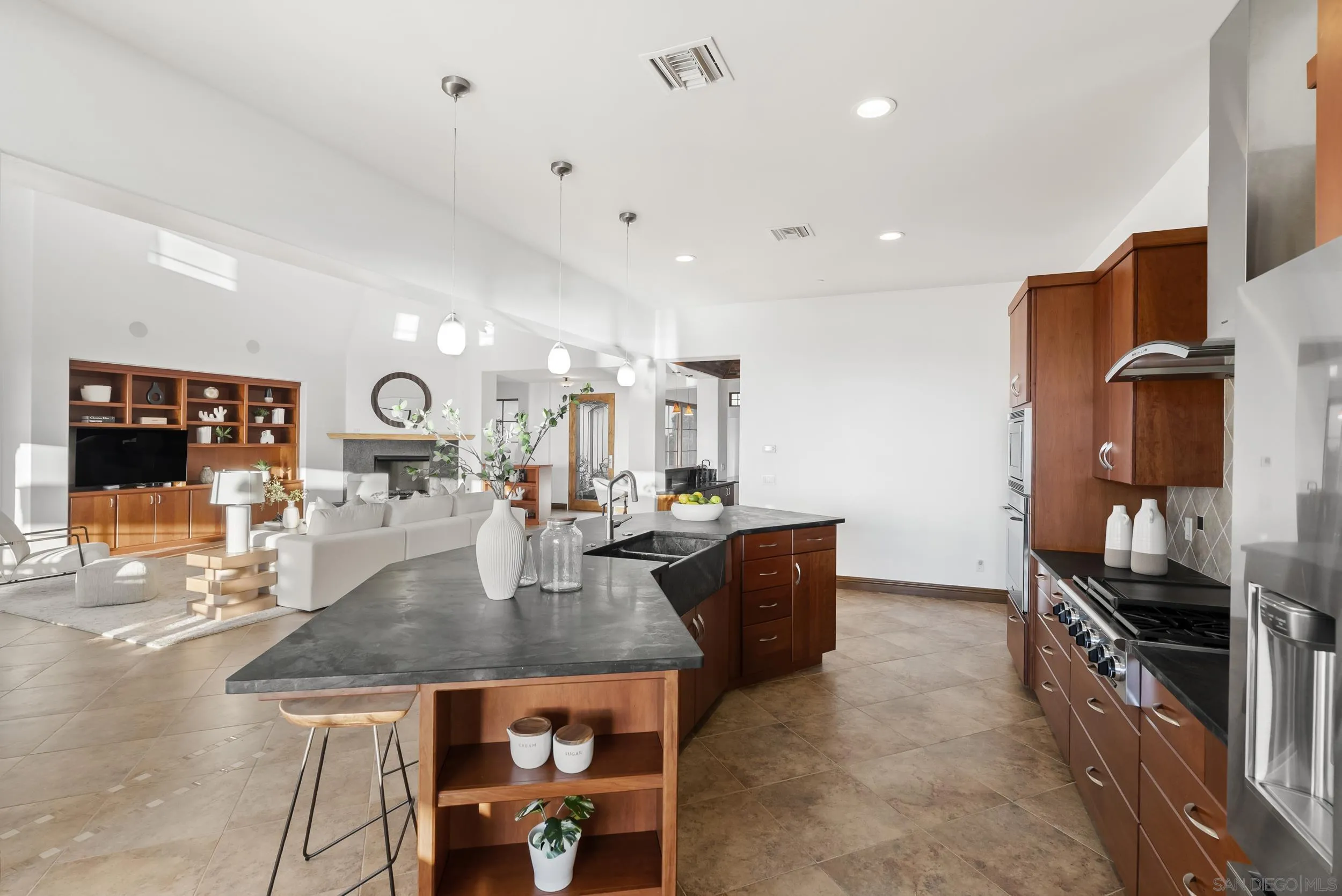 A chic & modern villa of boutique elegance and artful design. Perched atop a serene and private hillside in the prestigious guard-gated community of Cielo, this timeless Santa Barbara-style villa offers resort-style living at its finest. From the moment you step into the enchanting entry courtyard--complete with a cozy fireplace--you're welcomed into a world of refined comfort and effortless indoor-outdoor living. This custom inspired villa showcases a spacious open-concept design that is as tasteful as it is inviting. At the heart of the home, a chef's kitchen with a grand center island flows effortlessly into a sunlit breakfast nook and an expansive great room, creating the perfect setting for both everyday living and effortless entertaining. Thoughtfully designed for connection and comfort, the seamless layout blends timeless architecture with a warm, welcoming ambiance. The private quarters are designed for serenity and comfort. The primary suite serves as a true retreat, offering serene views, and a spa-inspired ambiance. A spacious secondary bedroom within the main residence also enjoys beautiful vistas, thoughtfully positioned away from the main living areas. The boutique-style attached casita provides a separate space for guests or a private home office, blending style with versatility. Showcasing breathtaking panoramic views that stretch in every direction from every room of the property. This custom inspired villa was designed to embrace San Diego's coveted lifestyle, the expansive great room flows seamlessly to a covered outdoor loggia with a fireplace--ideal for...