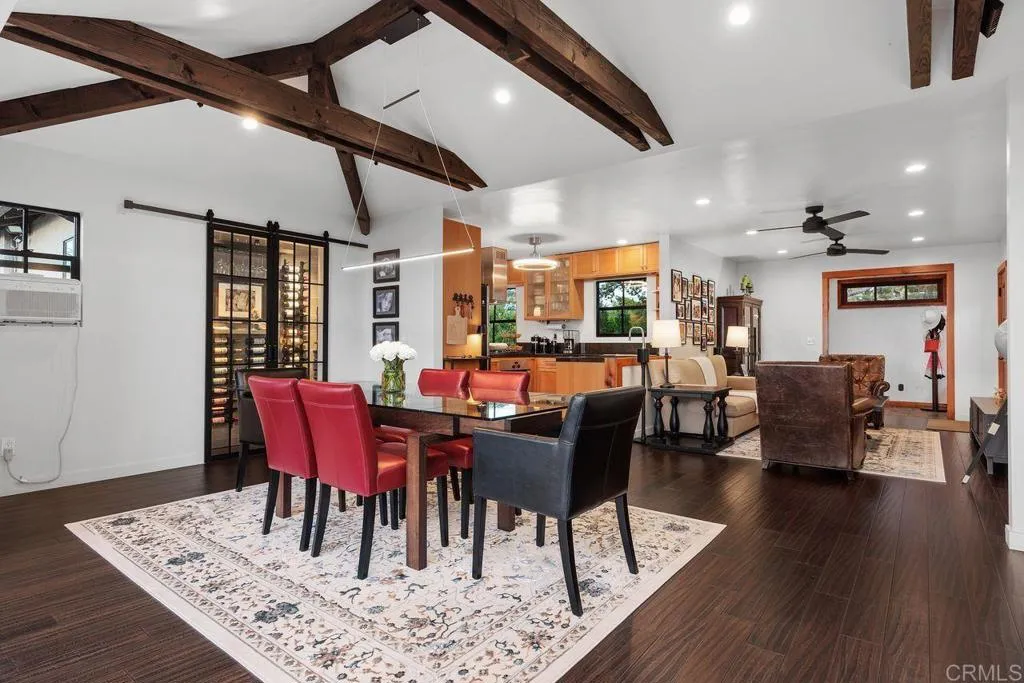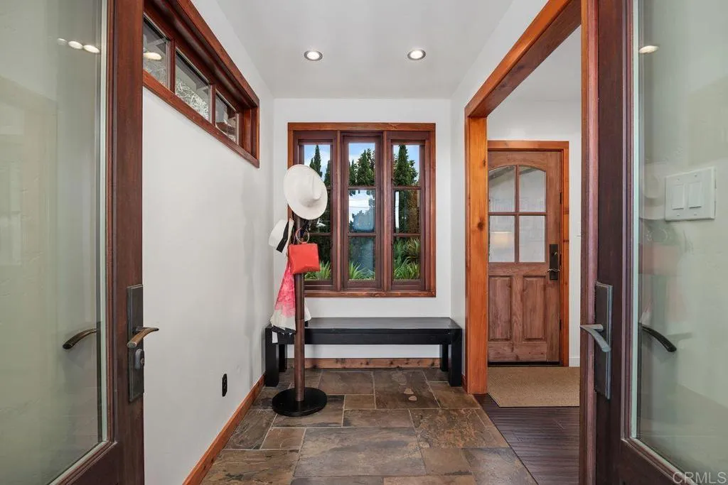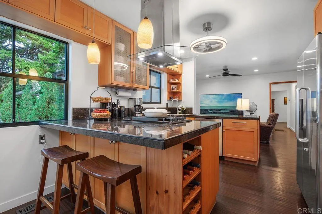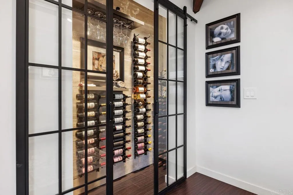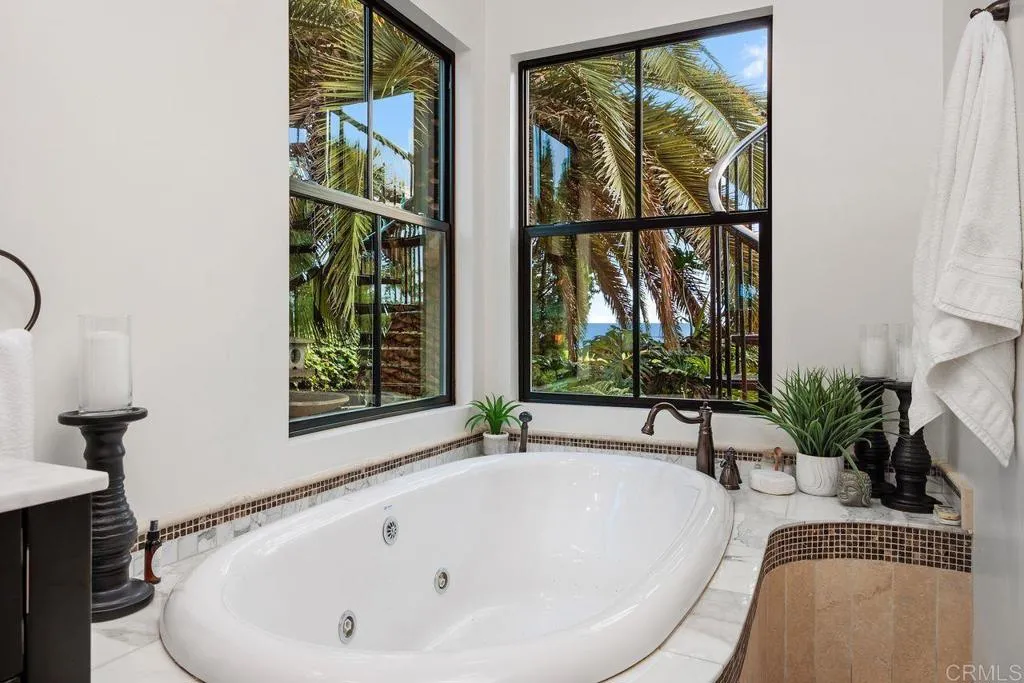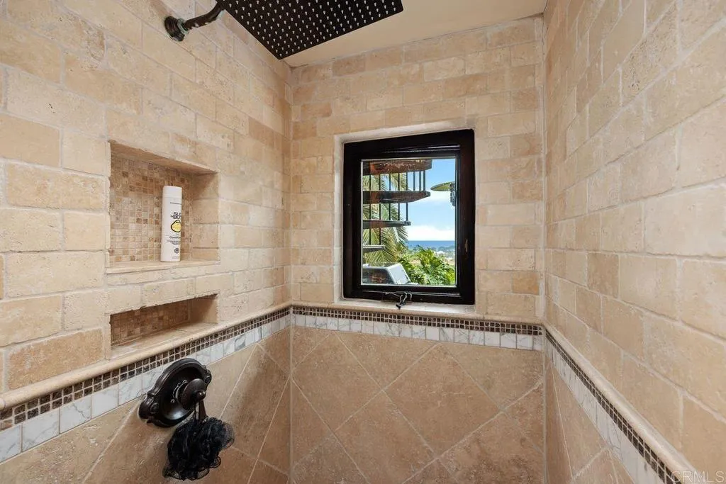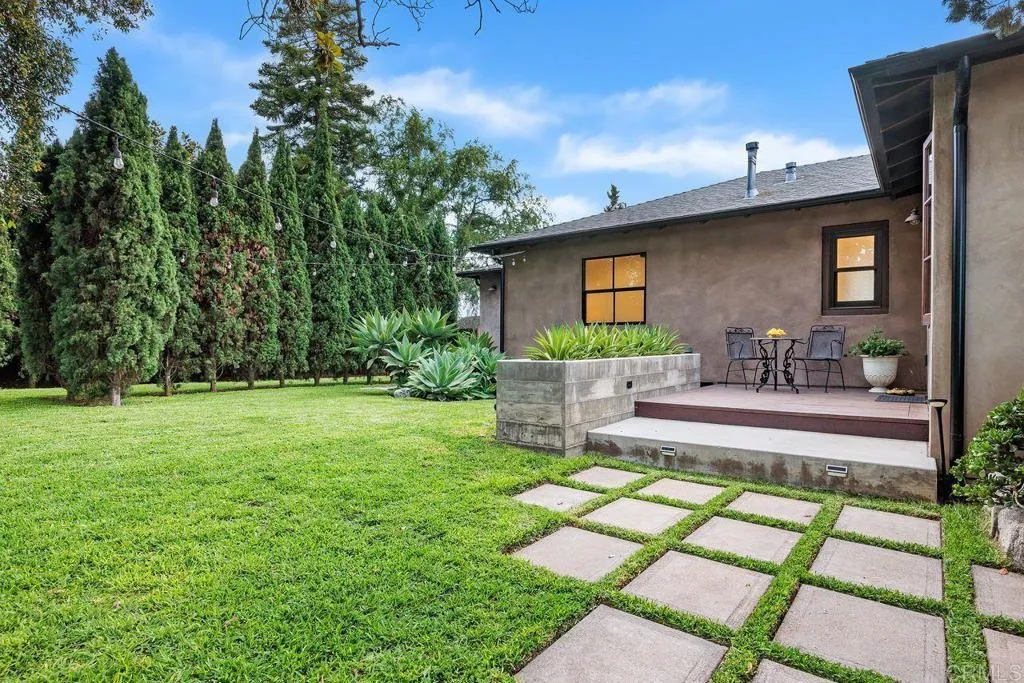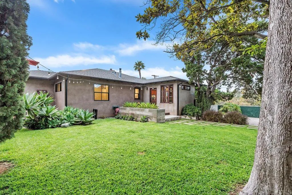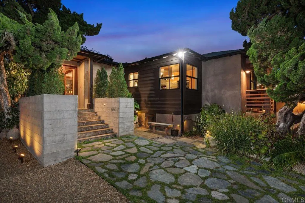 Experience the ultimate in coastal tranquility and privacy at this stunning half-acre gated compound, tucked away on a private easement road in the heart of Old Encinitas. This exceptional property features a beautifully appointed single-level main home with 3 bedrooms and a detached 1-bedroom guest houseperfect for extended family, guests, or a private retreat. The character of the main residence showcases bamboo flooring, a dramatic dining room with vaulted open-beam ceilings, an eye-catching wine vault, a sleek linear gas fireplace, and panoramic ocean views. Pocket doors open seamlessly to a breathtaking ocean view with a sprawling 500-square-foot redwood deck, ideal for entertaining or relaxing, with sweeping views of the manicured lawn, sparkling solar-heated saltwater pool, firepit lounge, bistro lighting, and a Ptanque court for casual outdoor fun. The spacious primary suite is a true sanctuary, offering a massive walk-in closet with custom built-ins and motion-sensor lighting. The spa-inspired bathroom includes a soaking tub with ocean views, vaulted ceilings, and direct access to a private, heated, ocean-view deck with a jacuzzian idyllic spot to unwind. Additional highlights include an additional second-level 100-square-foot deck for watching the sunset while enjoying your beverage of choice. Modern concrete planters anchor the entire house and enhance the homes design and architecture. The detached guest house has a unique character of its own featuring a generous bedroom that opens to the pool, a full kitchen, living area, a dedicated workout room and an outdoo