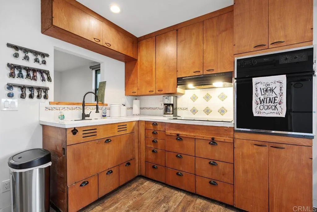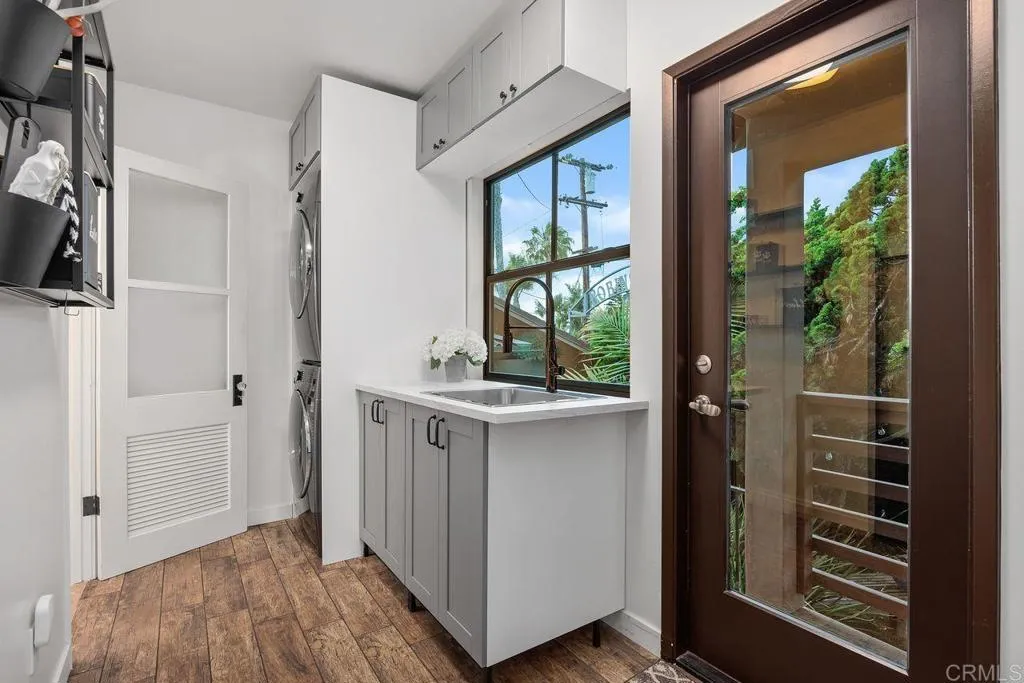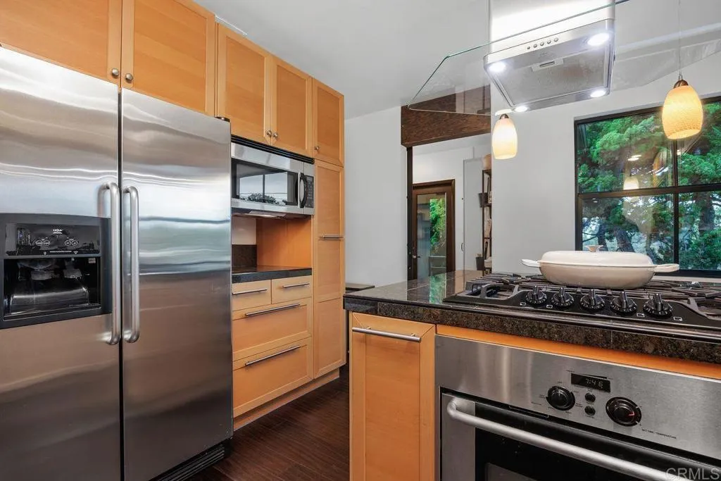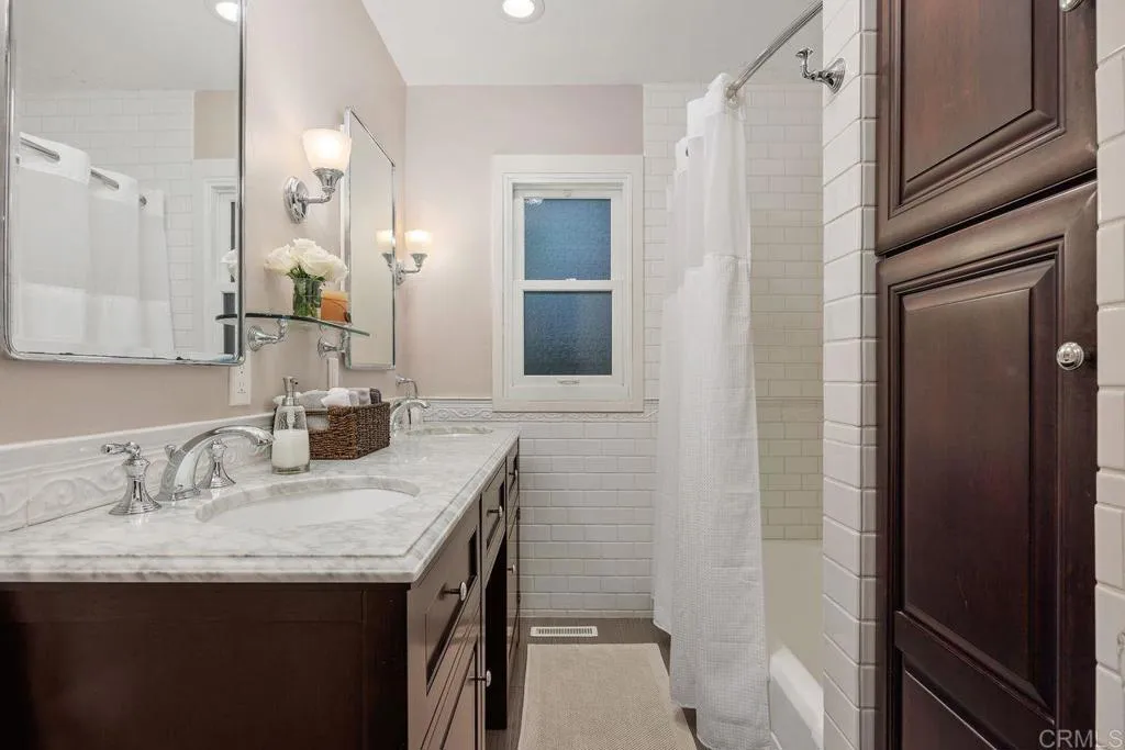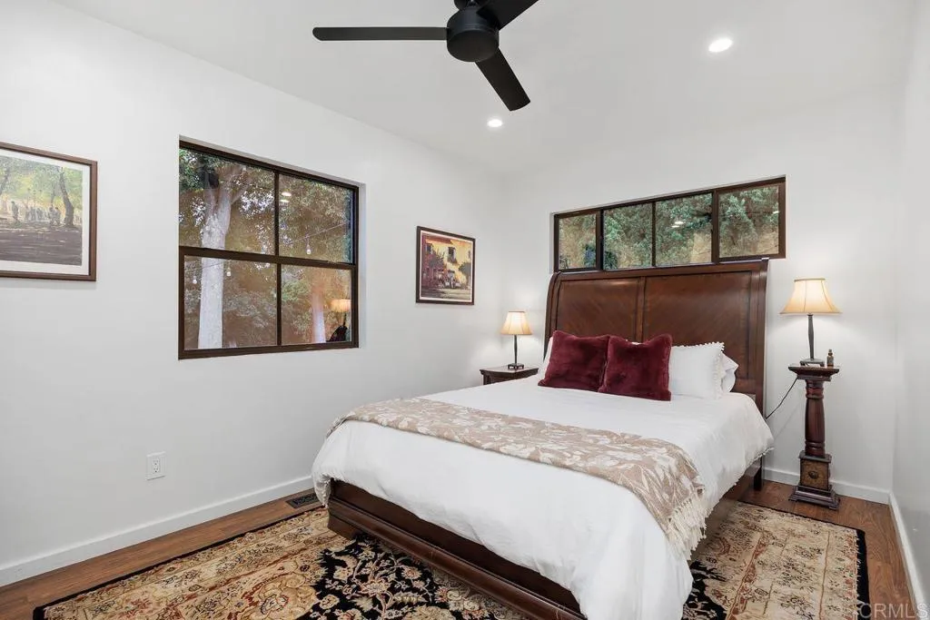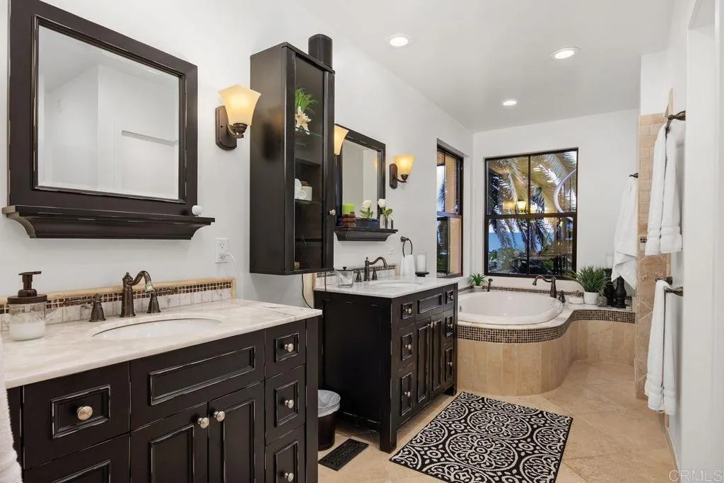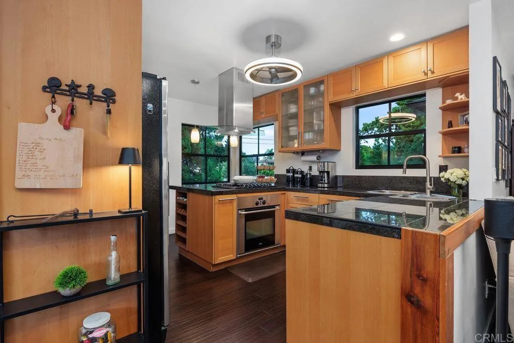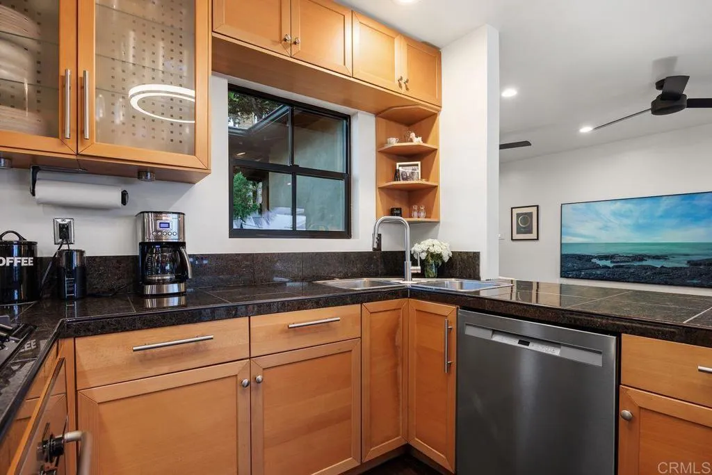 Experience the ultimate in coastal tranquility and privacy at this stunning half-acre gated compound, tucked away on a private easement road in the heart of Old Encinitas. This exceptional property features a beautifully appointed single-level main home with 3 bedrooms and a detached 1-bedroom guest houseperfect for extended family, guests, or a private retreat. The character of the main residence showcases bamboo flooring, a dramatic dining room with vaulted open-beam ceilings, an eye-catching wine vault, a sleek linear gas fireplace, and panoramic ocean views. Pocket doors open seamlessly to a breathtaking ocean view with a sprawling 500-square-foot redwood deck, ideal for entertaining or relaxing, with sweeping views of the manicured lawn, sparkling solar-heated saltwater pool, firepit lounge, bistro lighting, and a Ptanque court for casual outdoor fun. The spacious primary suite is a true sanctuary, offering a massive walk-in closet with custom built-ins and motion-sensor lighting. The spa-inspired bathroom includes a soaking tub with ocean views, vaulted ceilings, and direct access to a private, heated, ocean-view deck with a jacuzzian idyllic spot to unwind. Additional highlights include an additional second-level 100-square-foot deck for watching the sunset while enjoying your beverage of choice. Modern concrete planters anchor the entire house and enhance the homes design and architecture. The detached guest house has a unique character of its own featuring a generous bedroom that opens to the pool, a full kitchen, living area, a dedicated workout room and an outdoo
